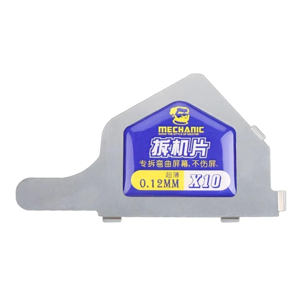 Mechanic X10, özellikle telefon ve tablet onarımlarında kullanılan profesyonel bir LCD / dokunmatik ekran kaldırma aracıdır. Dayanıklı çelikten üretilmiş yapısı sayesinde ekran ile kasa arasına kolayca girerek güvenli bir şekilde sökme işlemi yapılmasını sağlar. İnce ve keskin tasarımıyla cam veya ekran paneline zarar vermeden çalışmayı mümkün kılar.